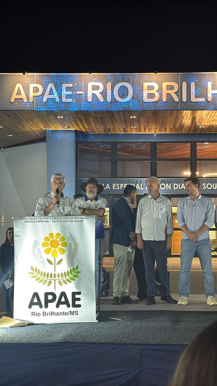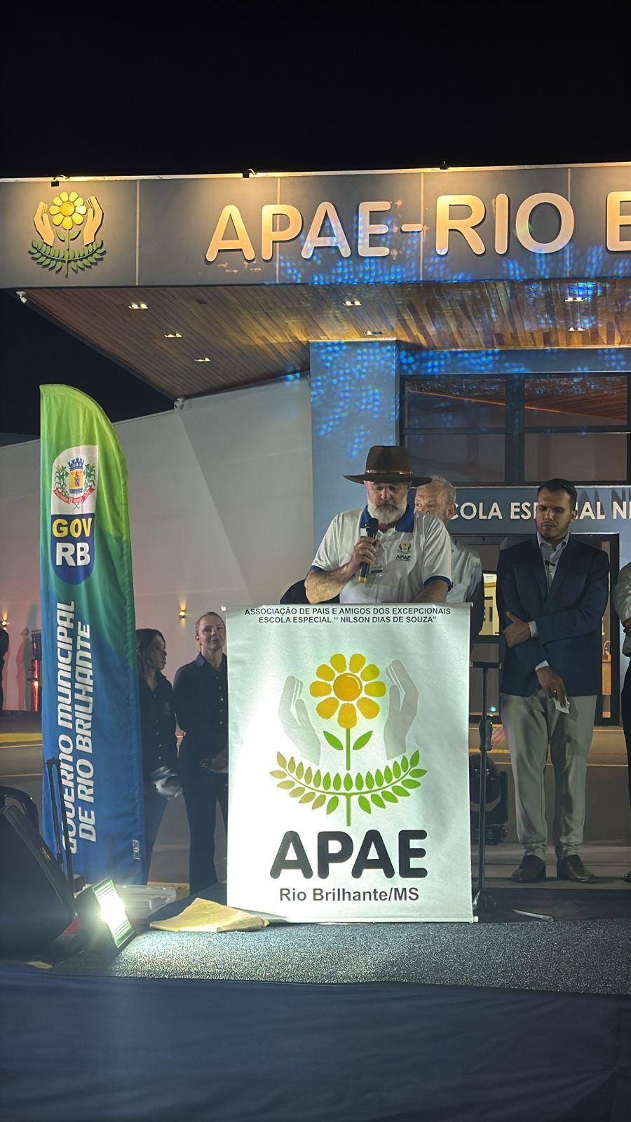 O evento reuniu autoridades locais, representantes do movimento apaeano, profissionais da educação, familiares e membros da comunidade, evidenciando o compromisso coletivo com a inclusão e a promoção de direitos. Entre as autoridades presentes estiveram Antônio José dos Santos Neto, presidente da Federação das Apaes do Estado de Mato Grosso do Sul, e Fabiana Maria das Graças Soares de Oliveira, vice-presidente da mesma instituição, reforçando o apoio institucional ao fortalecimento das Apaes no estado.Destacamos o acolhimento do Presidente Roberto Lago e sua esposa, Jucineia Lago, que nos receberam com entusiasmo e o carinho apaeano, com o coração transbordando de orgulho pela belíssima construção da escola especializada. Exemplar.A diretora escolar Itiene, nossa admiração, estava radiante pela grande obra, onde serão colhidos frutos do saber pelos estudantes e suas famílias.Autoridades do nosso estado, Deputado Federal Geraldo Resende, ilustre parceiro da Rede Apae MS, assim como os Deputados Marcos Pollon, Roberto Hashioka, Dr Luiz Ovando, o Prefeito Lucas Foroni, Vereadores, médicos e Secretários municipais abrilhantaram o evento com suas presenças.A solenidade também foi marcada pela presença maciça dos membros da Diretoria Executiva da Apae de Rio Brilhante, unidos pelo engrandecimento da Apae local, colaboradores da escola e do CER Apae, alunos, familiares e demais atendidos. Em destaque, a presença dos representantes das Apaes de Miranda, Willian e Elaine, e da Apae de Itaporã, Antônio Carlos Brandina e sua filha. A escola, que recebe o nome Nilson Dias de Souza, foi apresentada como um espaço planejado para promover inclusão, desenvolvimento e qualidade de vida aos estudantes atendidos pela instituição. Durante a solenidade, foram ressaltados o compromisso da Apae com a educação especializada e o trabalho coletivo que possibilitou a concretização desse importante projeto.